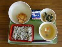 ドライカレーの中 に入 っているにんにくは、都賀地域 でとれたものです。疲労回復 に優 れています。普段私 たちが食 べているのは、茎 の部分 です。
