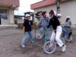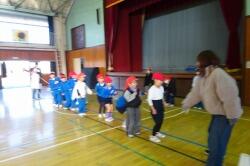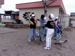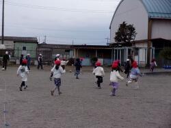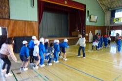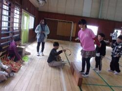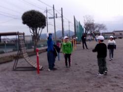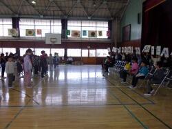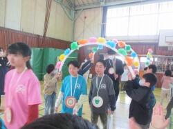 校庭には、おやじの会の皆様がアーチを作って下さっています