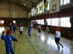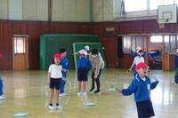1、2年生が体育の時間に、ボール運動にチャレンジしています。