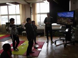 どちらの足で踏み切りますかー?「右足の人ー!」「左足の人ー!」「もう少しお試ししてみようかー!」等、自分の動きを振り返っていました。
