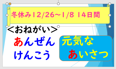 次回は3学期、1/12(金)の予定です。どうぞお楽しみに