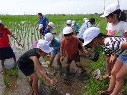 1・2年生は、田んぼで、3~6年生は赤渕川用水池で、観察します。