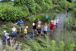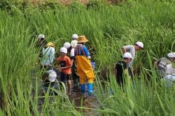 大変暑く、熱中症が心配されましたが、多くの皆様のご配慮のおかげで、もしもの時のために保健室として用意しておいた現地の冷房の部屋を使用することもなく、無事に終了できました用水路や赤渕川の水も、地下水なので、思ったよりもとても冷たく、身体を冷やしてくれました