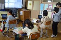5年生は、社会の学習で個別に自分の気付きをタブレットに書き込む作業の支援をしていただきました。