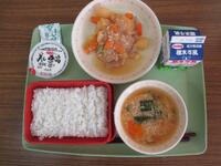 今日 のカレーに入 っているぶた肉 、にんにく、たまねぎ、なすは栃木市産 です。夏野菜 で作 った季節 のカレーをしっかり食 べて、暑 い夏 を乗 り越 えましょう。