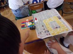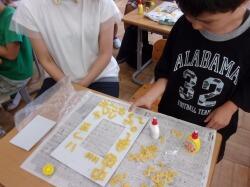 乾燥したマカロニを使い、親子で額縁をつくりました