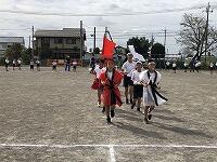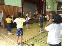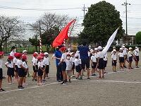 来週からの全校での運動会練習の前に、5・6年生が運動会の開会式練習を始めました。