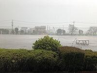 早朝の大雨で、校庭が水たまりでいっぱいになりましたが、雨雲の動き等を確認し、実施することにしました。