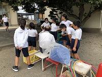 今日は、当初の予報と異なり、朝のうち、雨が降っていなかったので、4年生が協力して、朝礼台を移動してくれました。