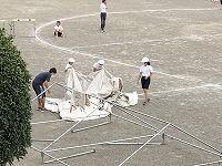 連休中天気がよかったので、テントの屋根もしっかり乾いたので、雨が降らないうちに・・・と、休日のうちに先生方でテントの片付けを行いました。
