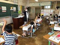 1年生にとっては、学校生活が始まって、まだ1か月と少し…授業の始めと終わりの挨拶や、1時間よい姿勢を保って授業を受けること、鉛筆のもち方やノートの書き方などの基本的な“学業指導”も、担任の先生が丁寧に指導しているので、だいぶ身に付いてきました。