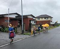 このところ、毎日登校の頃には、雨降りだったので、車で送ってきてもらう子が多かったのですが、今朝は、久しぶりに歩いて登校する班がたくさん見られました。