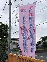 ▲校庭南の正門に、6月の中旬頃から「のぼり旗」を設置してあります。