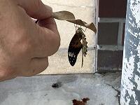 ▼別のチョウの羽化したばかり…さなぎの下に倒れて動けなくなっていたよ。