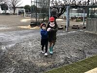 ↓↓雪投げをしてぶつけ合ったので、泥だらけになってしまって(雪が少ないので、土が混ざってしまうんですね)