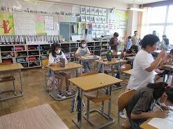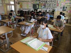 水曜日の1時間目、1、2年生が集中して学習に取り組んでいました。