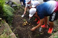 今日の5時間目、6年生はジャガイモの収穫をしました。