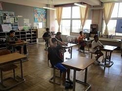 子どもたちは、エアコンの効いた室内等で、工夫しながら生活をしています。