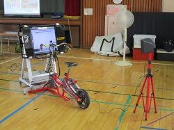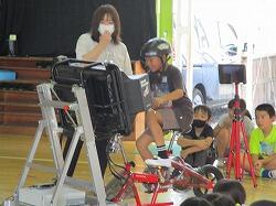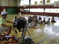 今回の教室は、栃木県の県民生活部くらし安全安心課からお2人の講師をお招きして、「自転車シミュレーター」という機器を活用しての実施でした。