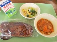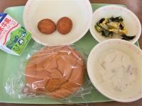 メンチカツバーガーにサラダ、クラムチャウダーと、洋風メニューですね。クラムチャウダーはアメリカの東海岸で生まれたメニューです。牛乳で作る白いクラムチャウダーと、トマトスープで作る赤いクラムチャウダーがあるそうですが、私は白い方がすきですね