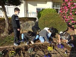 などと、会話が始まり、「水やり」の世話を始めました。雑草がはえていることに気付いた子が、「草取り」の世話もしていました。
