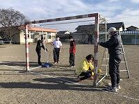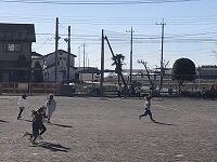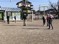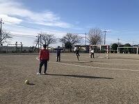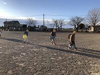 サッカーをして遊ぶ1年生と2年生…仲よく楽しそうです
