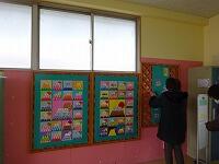 子どもたちが学習した足あとや、作った作品が廊下に飾ってあり、制作しているときの姿を思い浮かべながら楽しむこともできます