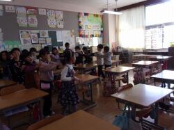 1校時、元気な歌声が音楽室から響いてきました4年生が音楽で「もみじ」の二部合