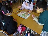 ▲担任の先生の指導で、ALTの先生の発音をよく聞いて、まねして表現しています。