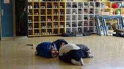 この時間は、昇降口と西階段下に、自分の荷物を並べてから、それぞれのクラブの部屋に移動することにしました。