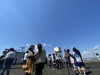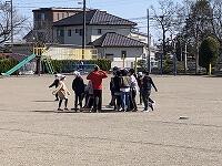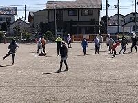 複数の学年の子どもたちが、仲よく楽しそうに遊んでいる、本校ならではの光景に、ほっこりした気持ちになって、カメラを向けました。よ~く見ると、ドッジボールとドッチビーが何個か飛びかっていましたよ!! なかなか、おもしろそうなルールを工夫していますね。