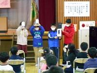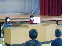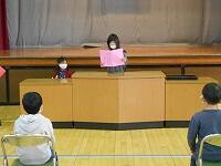 毎日の飼育当番の様子や、アルミ缶・エコキャップ回収の活動報告の後、児童たちが考えた〇✕クイズをいくつか出題しました。