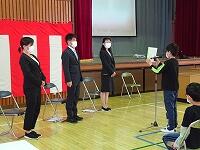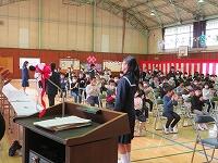 本日給食前に、「美化ボランティア委員会」の児童が、日頃の活動について発表をしました。