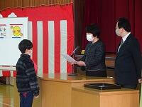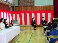 樋ノ口自治会長様から、1年生の子どもたちに、プレゼントがありました。「幸せが訪れますように」という封筒に入った文房具と、『大安吉日』という毛筆で書かれた作品です。地域の方から、大宮南小の子どもたちへの、あたたかい思いがたっぷり込められていて、とてもうれしいですね。子どもたちが持ち帰りますので、文房具は大切にお使いください。そして、『書』は、是非、家に飾ってくださいね。地域の皆様、ご家族の皆様に、"めでたく、縁起のよい日”が訪れますように・・・