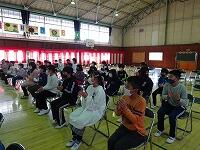 入口で手指消毒をしていただき、間隔をあけて並べた椅子に座っていただき、開会しました。