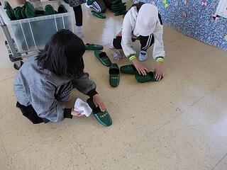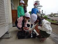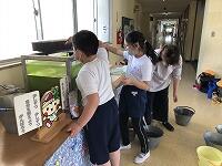 昨年も飼育委員会だった子が新しい担当にコツを教えながらの作業です。
