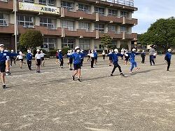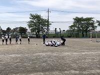 始めは、動きの基本から、そしてボールを使っての練習に移っていきました。間隔をあけて、感染予防や熱中症対策をしながら、怪我をしないように気を付けて、楽しみながら体力作りをしていきたいと思います。