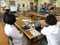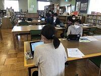 今週19日(月)の放課後には、外部講師を招き、本校の図書室で、端末や今回導入されたソフト「Metamoji」の使い方について職員研修を行いました。