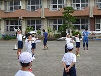 ▼代表児童の号令に合わせて、体操の隊形に開くところと、元の位置に集まるところを確認しました。