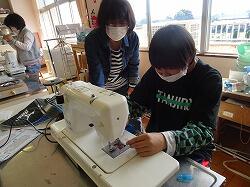 6年生が、ミシンボランティアの支援でナップザックを制作しました。