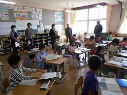今回は、まず各教室を訪問して「授業参観」をしていただき、学習活動の様子や、児童の学習への取組状況を観ていただきました。