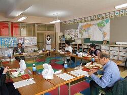 続いて、給食を試食していただきながら、学校給食における食物アレルギーへの対応について給食主任から説明しました。