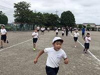 臨時休業が長かったので、子どもたちの運動不足が感じられます。学校では無理のないように、少しずつ慣らしていこうと考えています。今日は初めてだったので、息を切らしている子や、途中で歩いている子も見られました。先生方も、子どもたちの様子をよく観察しながら「無理をしなくて大丈夫だよ。」「止まらないで、歩こうね。」などと声をかけ、励ましています。