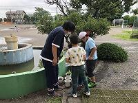昨日は、雨が降ったのに、「土が乾いているよ。」「風で植木鉢が倒れないように、壁の方に寄せたからかな?」「葉っぱがしょんぼりしてるよ。」などと話したり予想したりしながら、水やりをしています。