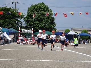 運動会の一場面です。すべての種目でたくさんの活躍が見られました。