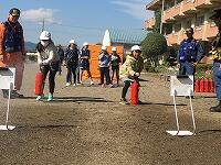 今回は避難後、栃木消防署の方がたに来ていただき、消化器を使った消火訓練と