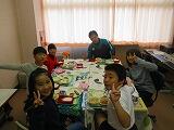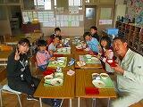 上級生が下級生の面倒を見てあげたり、話しかけたりしてくれたので笑顔いっぱいの楽しい給食になりました。
