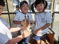 今日の2時間目の生活科の授業では、1年生はウサギと触れあいました。