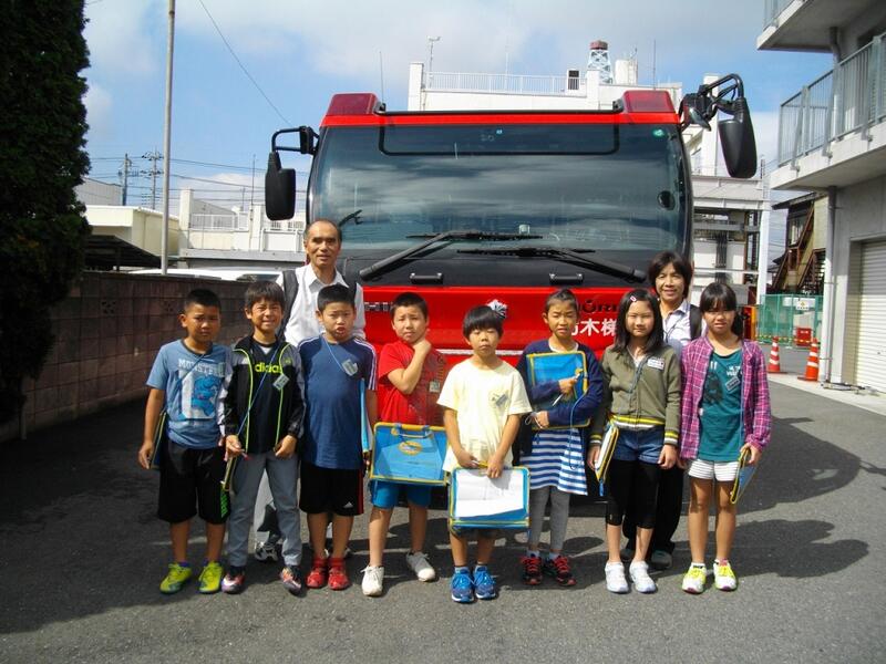 国府南小学校と合同で消防署見学に行きました。見学中に火事などの災害が3件も入り見学は途中で打ち切りになってしまいましたが、緊張した場面を見られて実り多い見学でした。