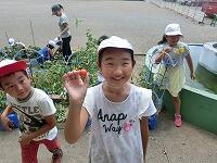 一人の児童の写真を撮っていると別の児童も野菜を持って先生と声をかけてくれます。
